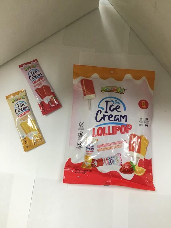 ZAZERS ICE CREAM LOLLIPOP STRAWBERRY / ORANGE FLAVOUR (15 POPS)